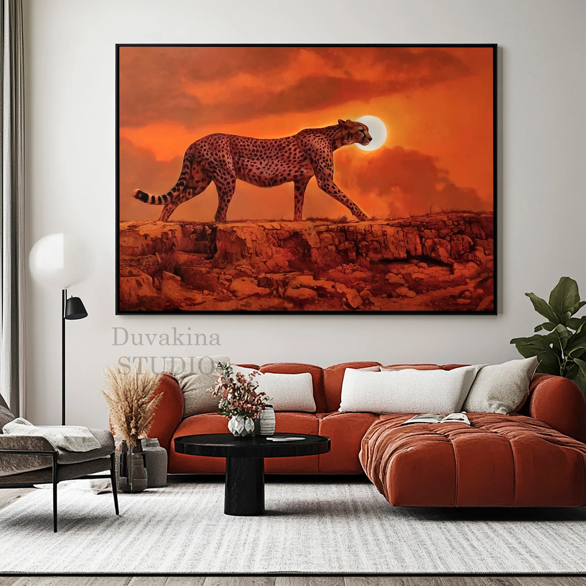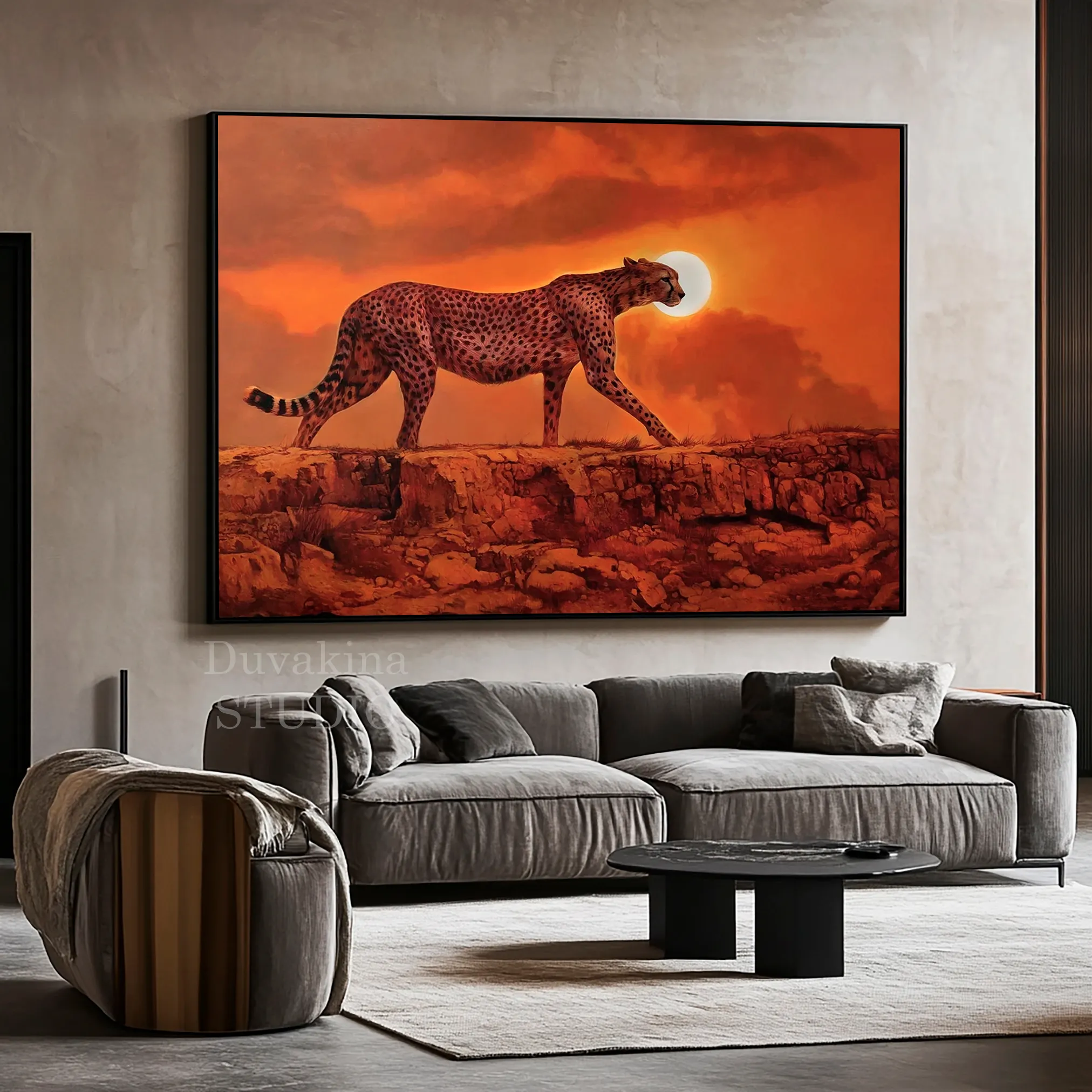 Во время создания этой работы я испытывала мощный поток эмоций, который буквально окутывал меня, как теплые лучи солнца. Я хотела запечатлеть не только красоту гепарда, но и ту магию, которая царит в природе, когда день уступает место ночи. Каждый штрих перетаскивал меня в мир, где обитает этот великолепный хищник, и я чувствовала, что он — символ силы и грации, заметный даже на фоне затухающего света 🌇✨.